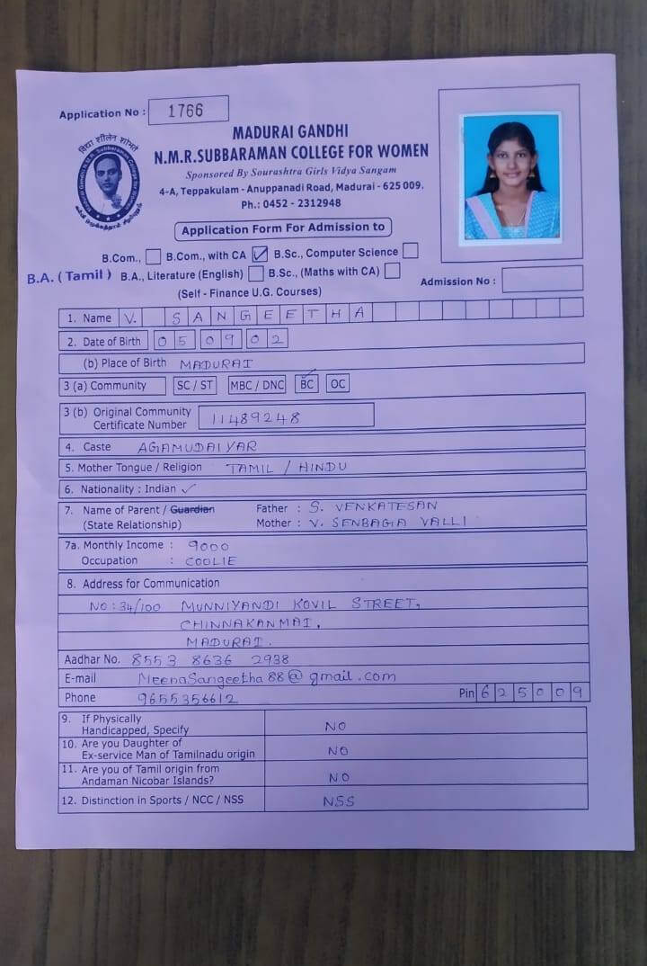 Education Fee Paid for Ms. Sangeetha for all semesters